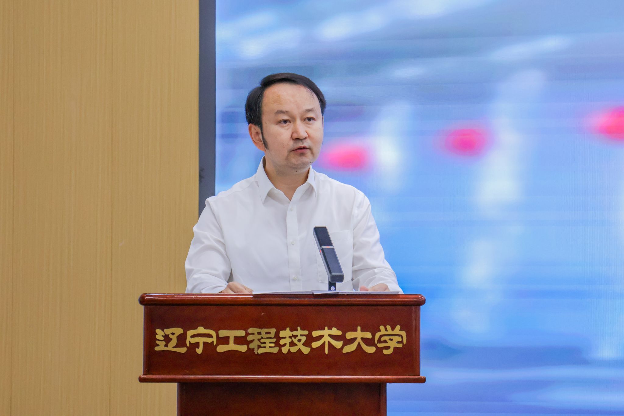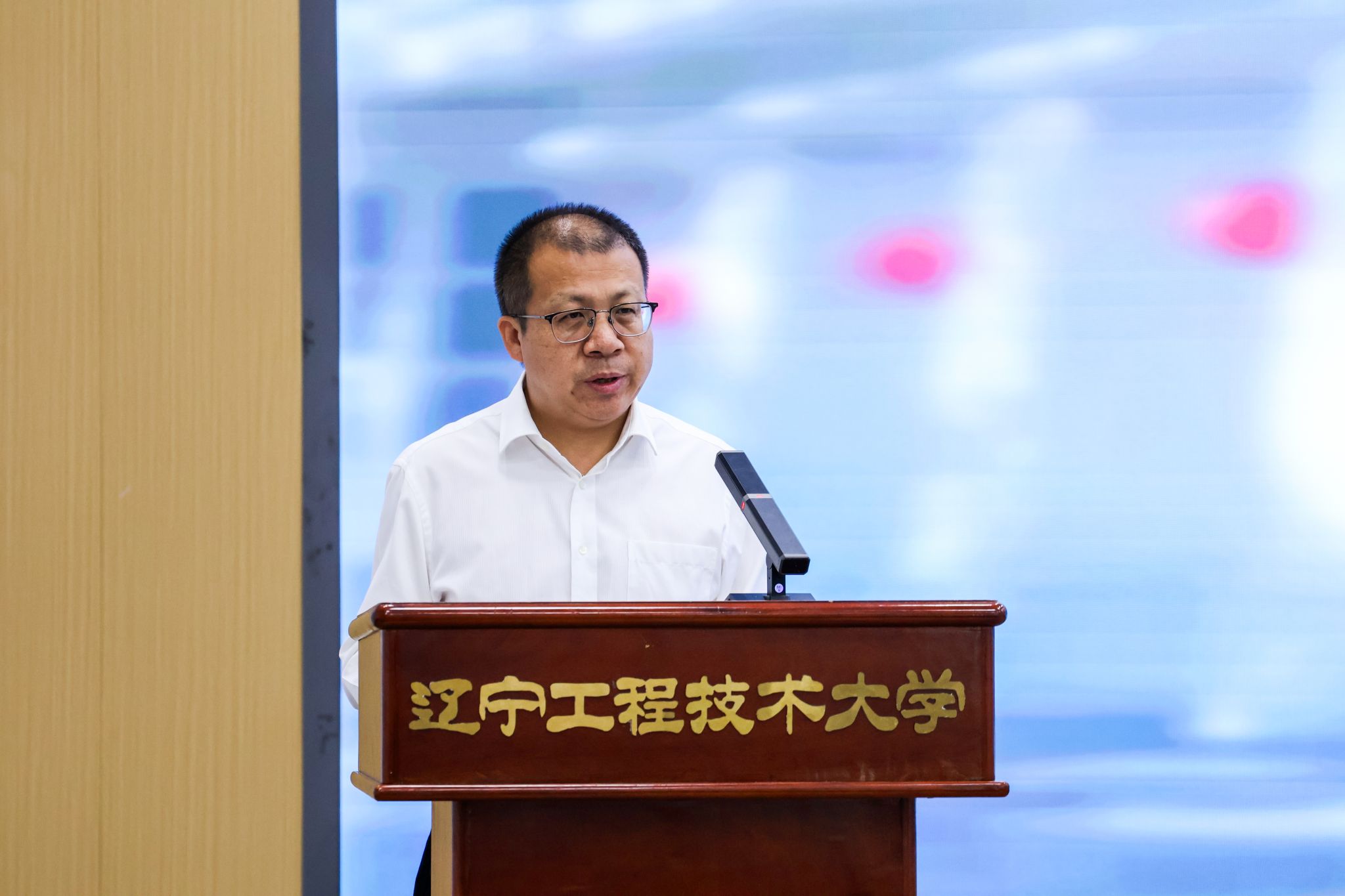 辽宁工程技术大学党委常委、副校长、组织部部长兼党校常务副校长付海波致辞。付海波对新疆工程学院师生的到来表示热烈欢迎,并强调两校合作对于推动人才培养、学科建设与学术交流具有重要意义,希望同学们珍惜此次交流机会,拓宽视野、提升能力,为未来职业生涯奠定坚实基础。