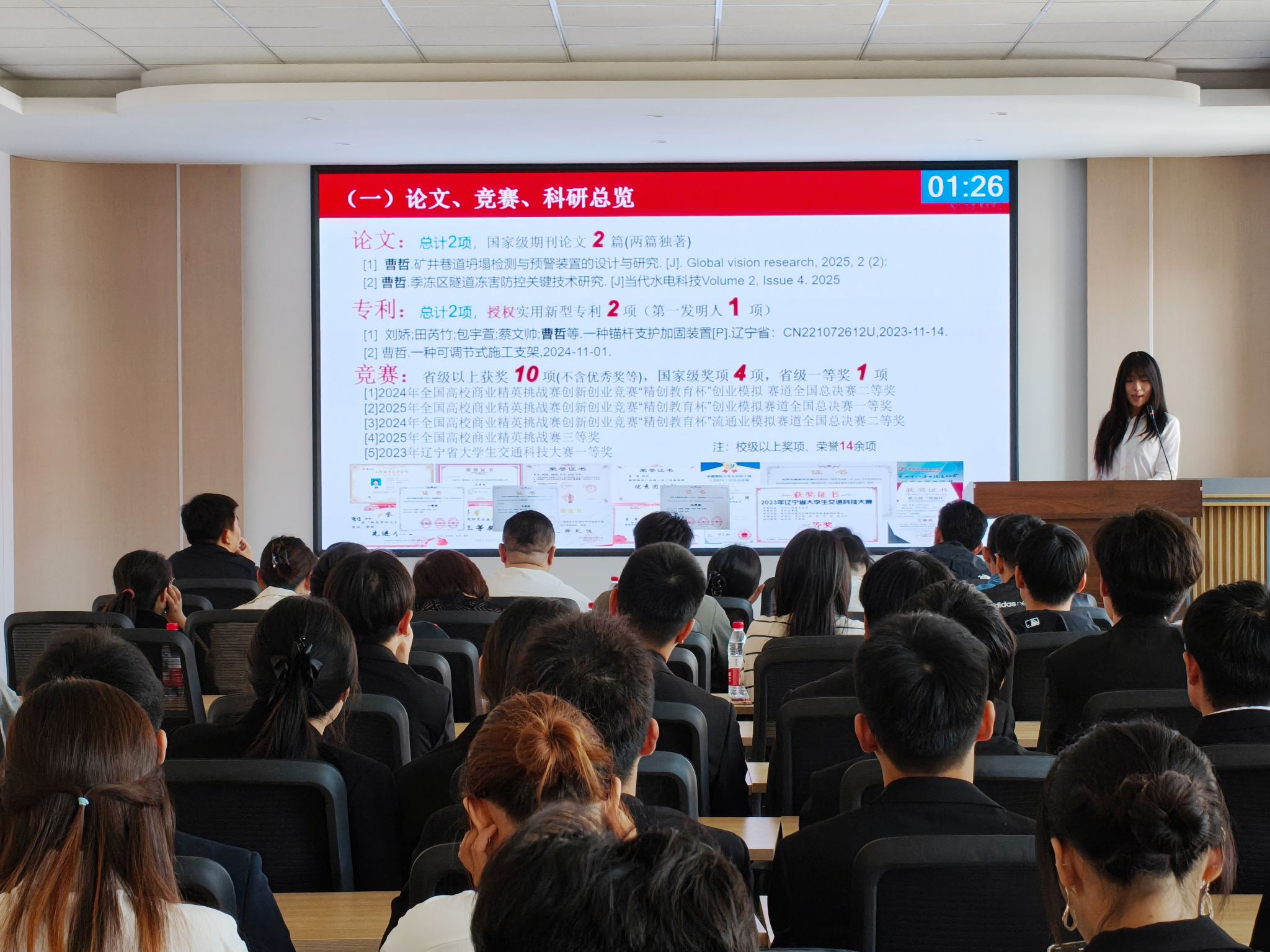 本次答辩严格遵循公平、公正、公开的原则,旨在通过现场展示与综合考评,挖掘土木学子中的榜样力量,进一步营造学院勤学善思、奋勇争先的良好学风,为广大学生树立可学可做的成长标杆。经过评审,最终确定8名同学作为国家奖学金推荐人选,9名同学作为省政府奖学金推荐人选。此次推荐的人选均展现出学院学生扎实的学科基础、积极的进取态度与强烈的责任担当。未来,学院将以此次评审答辩为契机,进一步加强优秀学生事迹宣传,鼓励更多学生以获奖学生为榜样,在专业学习中深耕细作,在实践探索中勇毅前行,以青春力量书写土木学院发展的新篇章。
