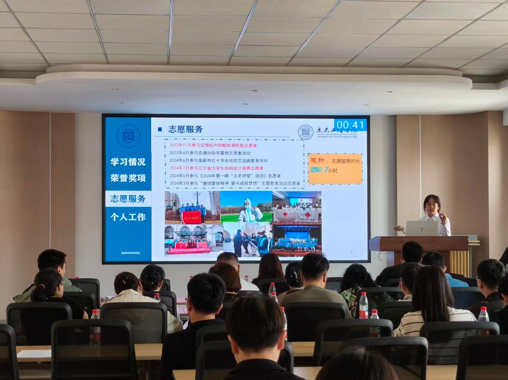 为充分发挥奖学金的激励导向作用,选拔表彰在学业成绩、科研创新、社会实践等方面表现突出的优秀学子,9月26日,土木工程学院组织开展2025年国家(省政府)奖学金评审答辩会。本次评审邀请了17位由学院领导、专业教师、辅导员和学生代表组成的评委团,从思想觉悟、学业水平、实践能力、综合素质等多维度对参评学生进行考核。