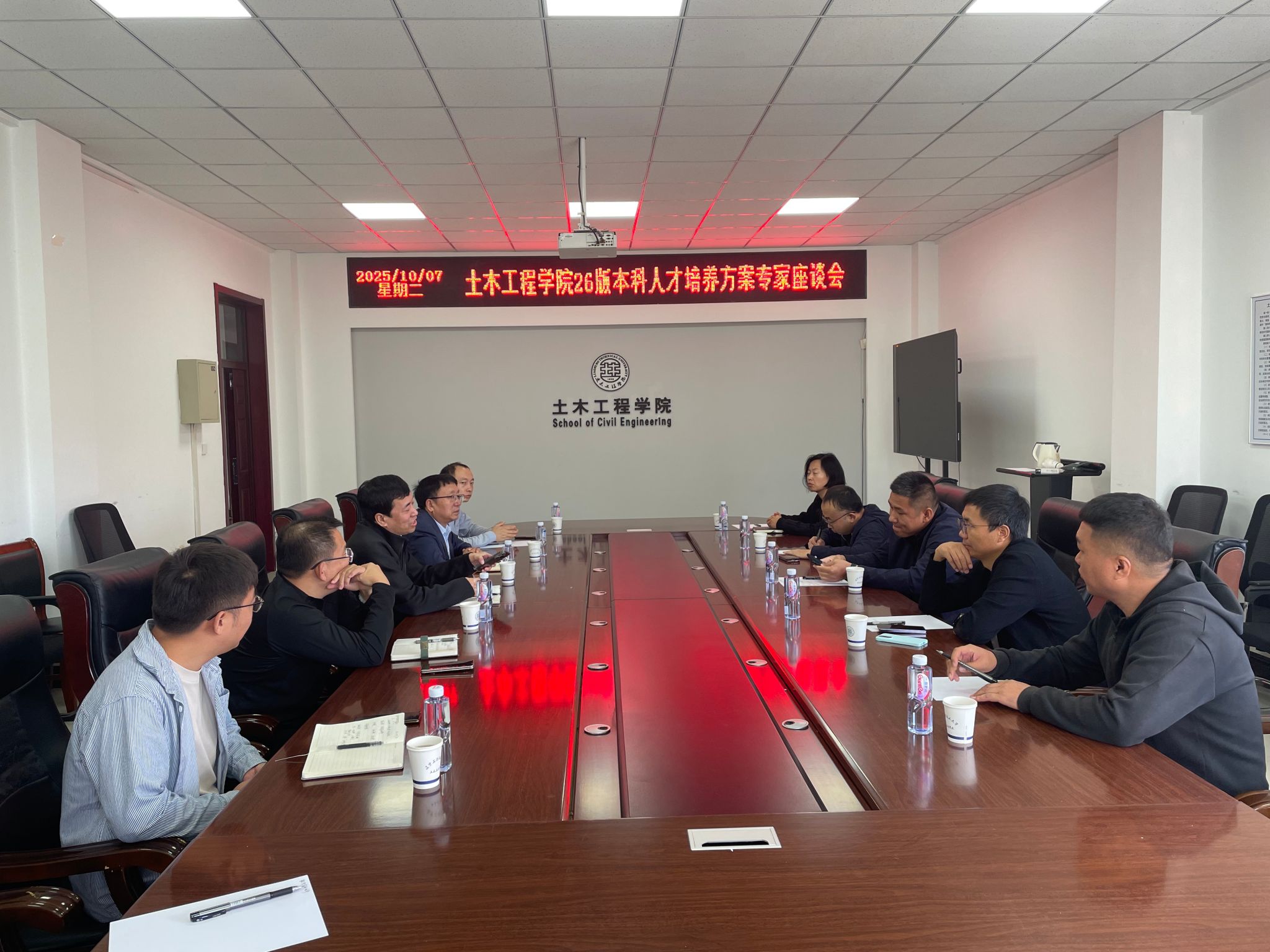 10月7日,为主动适应建筑行业新发展需求,深化产教融合,将2026版人才培养方案修订工作落到实处,土木工程学院邀请中国铁路工程有限公司、中国交通建设集团有限公司、中国建筑集团有限公司等单位校友回到土木工程学院,就2026版人才培养方案修订进行了座谈。学院副院长(主持工作)贾宝新、副院长宋洋、副院长李喜林,以及各系主任、教务科长等与企业校友进行交流。