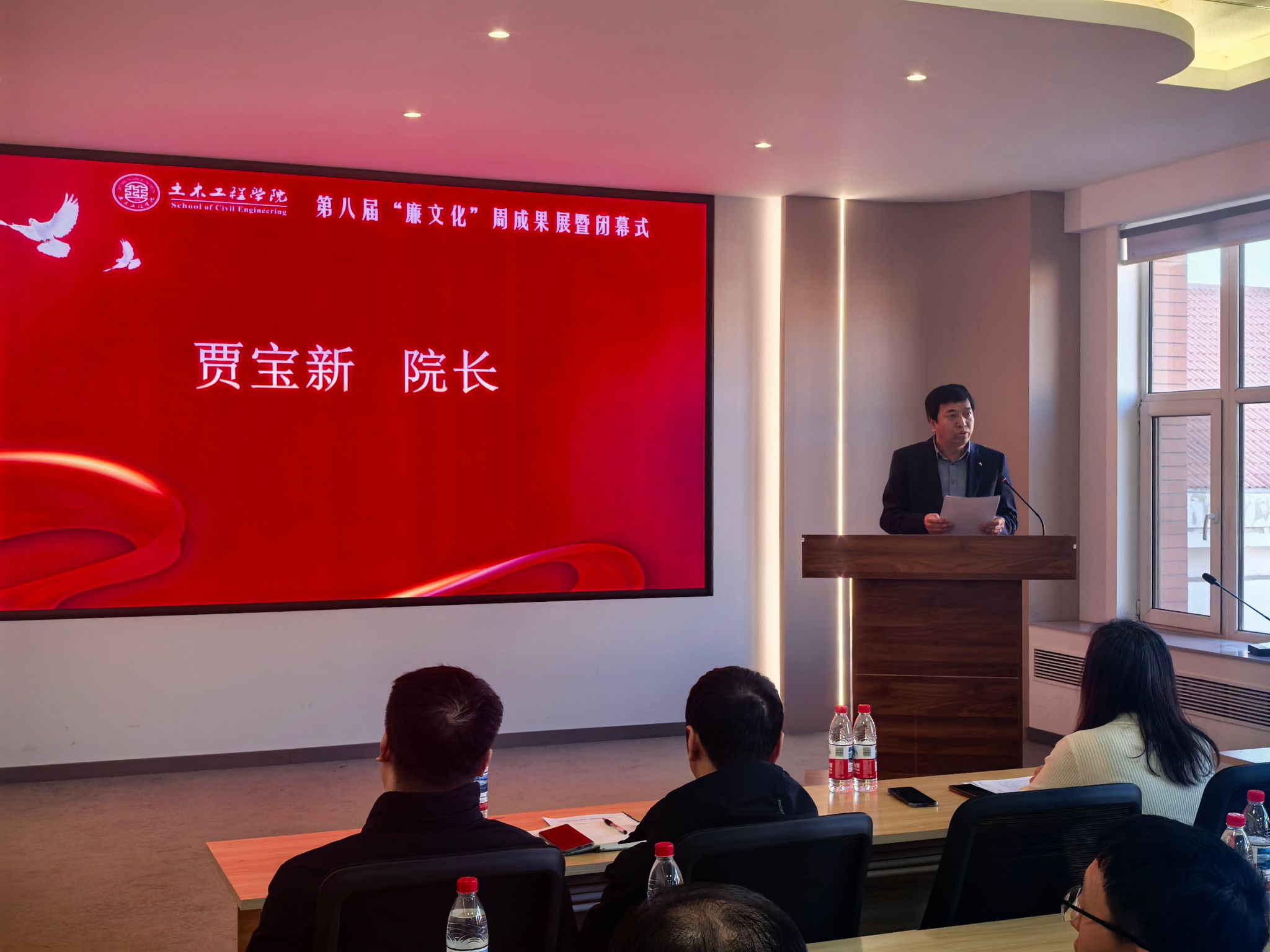 为贯彻落实学校相关文件精神,强化教职工生对廉洁文化的认知认同,引导师生厚植廉洁价值理念,将廉洁意识融入日常行为准则,从“知廉”到“践廉”,培育“以廉为美、以洁为荣”的校园风尚,土木工程学院自9月以来开展了第八届“廉文化”周系列活动。活动历时三个月,取得了良好成效。12月3日,学院在知信楼404室举办了第八届“廉文化”周成果展暨闭幕式。学院领导班子、党支部书记、教职工和学生代表90余人参加会议,会议由学院纪委委员、给排水科学与工程系师生联合党支部书记、系主任宋玮华主持。