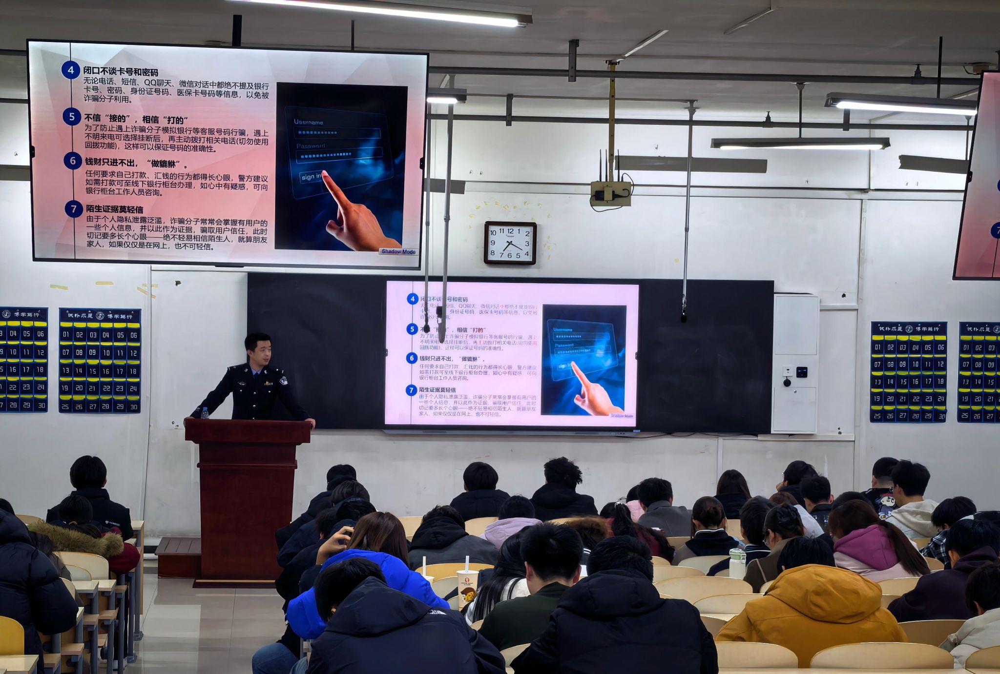 为切实提升学院学生的反诈防骗意识与识骗能力,土木工程学院邀请中华路派出所所长刘识邈,分别于3月19日、3月20日在博文楼403室开展“预防电信(网络)诈骗”专题讲座。学院全体博士、硕士研究生及本科生代表参加本次讲座。