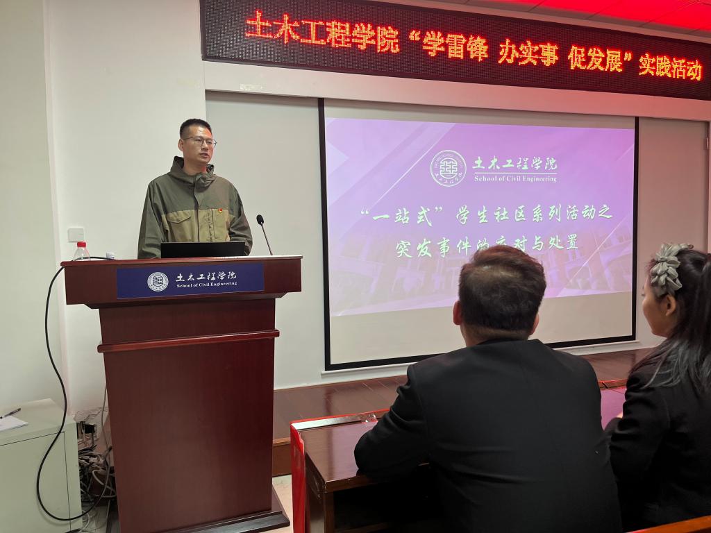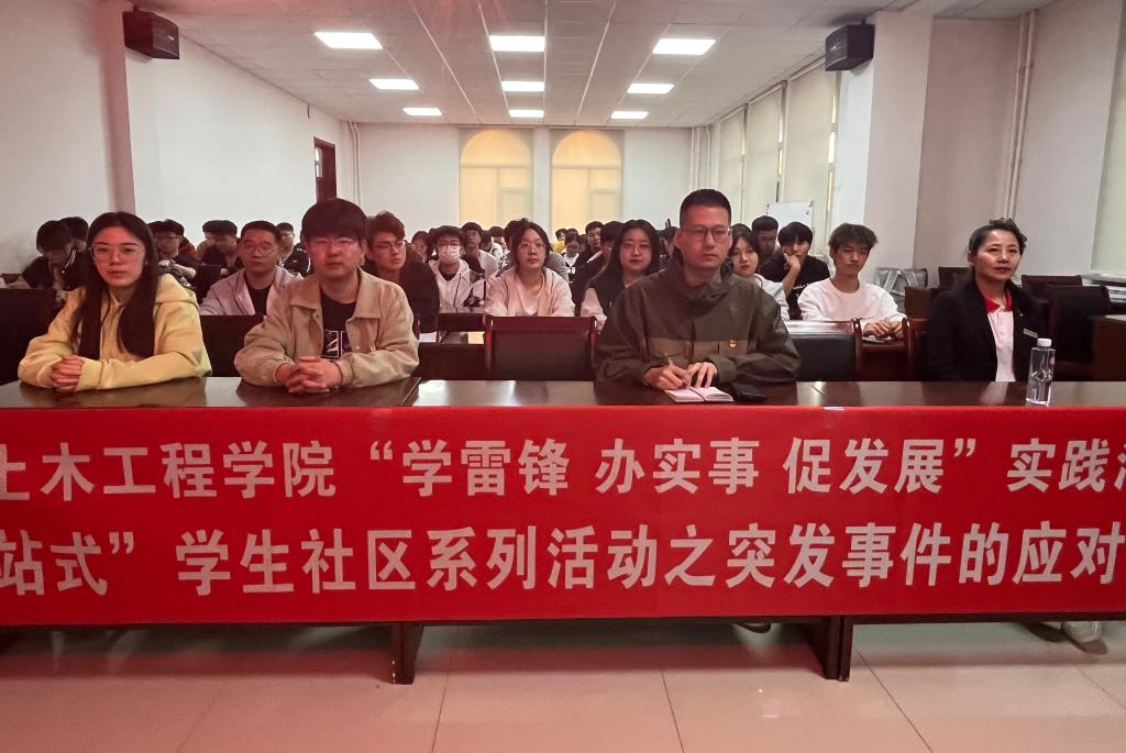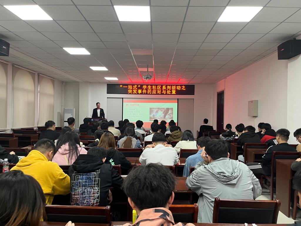 继续深入落实教育部等八部门联合颁布《关于加快构建高校思想政治工作体系的意见》以及我校“一站式”学生社区综合管理模式建设实施方案,及时妥善处置影响校园安全稳定的各类学生突发事件,维护学校正常教学和生活秩序,营造良好育人环境,提高学生突发事件的安全防范意识,增强学生安全防范能力,土木工程学院联合阜新市红十字会于2023年4月18日18时在知信楼316室举办“一站式”学生社区系列活动之突发事件的应对与处置讲座,讲座由学院学生社区服务中心主任石起振主持,阜新市红十字会急救培训师孙浩然主讲,急救培训师李继平协助。此外学院学生各党支部党员骨干、各学生组织代表共计80余名参加此次讲座。