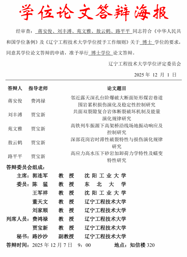 2025年12月土木工程学院博士学位论文答辩公告