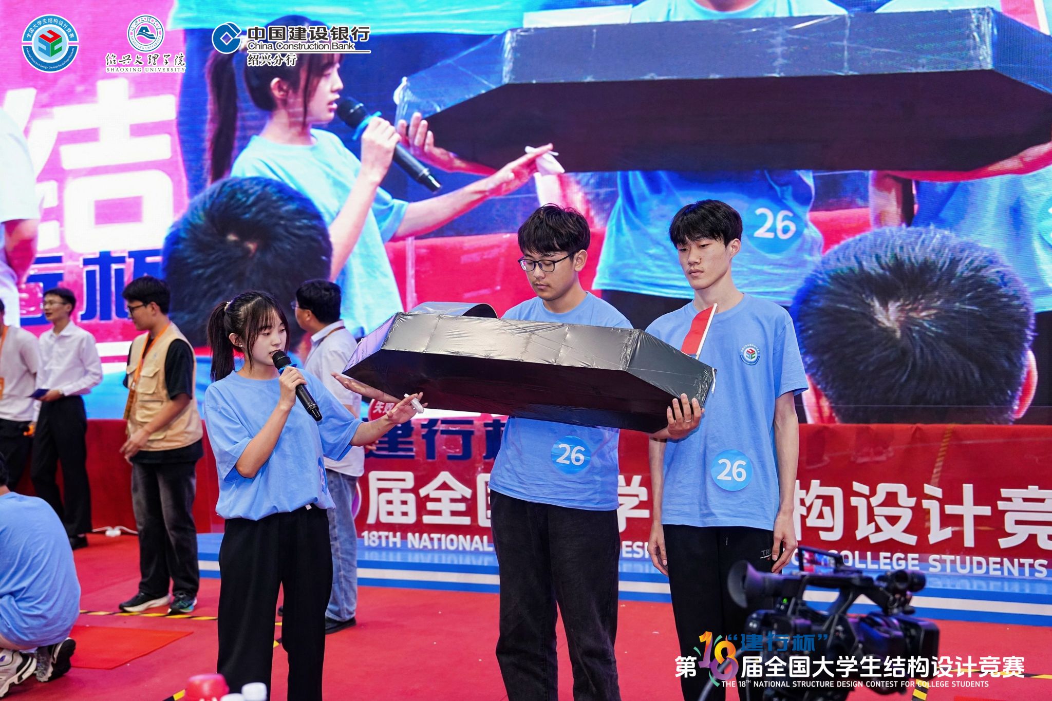 10月19日,为期五天的“建行杯”第十八届全国大学生结构设计竞赛在绍兴文理学院举办。我校由土木工程学院副院长(主持工作)贾宝新带队,吴秀峰、张童、包宇洋为指导教师,刘晓钰、唐彬哲、赵倩栋三位同学代表学校参赛,他们不畏强手、奋勇拼搏,经过15小时现场模型制作、陈述答辩、模型加载等环节激烈比拼,最终斩获全国一等奖,我校获评优秀组织奖。